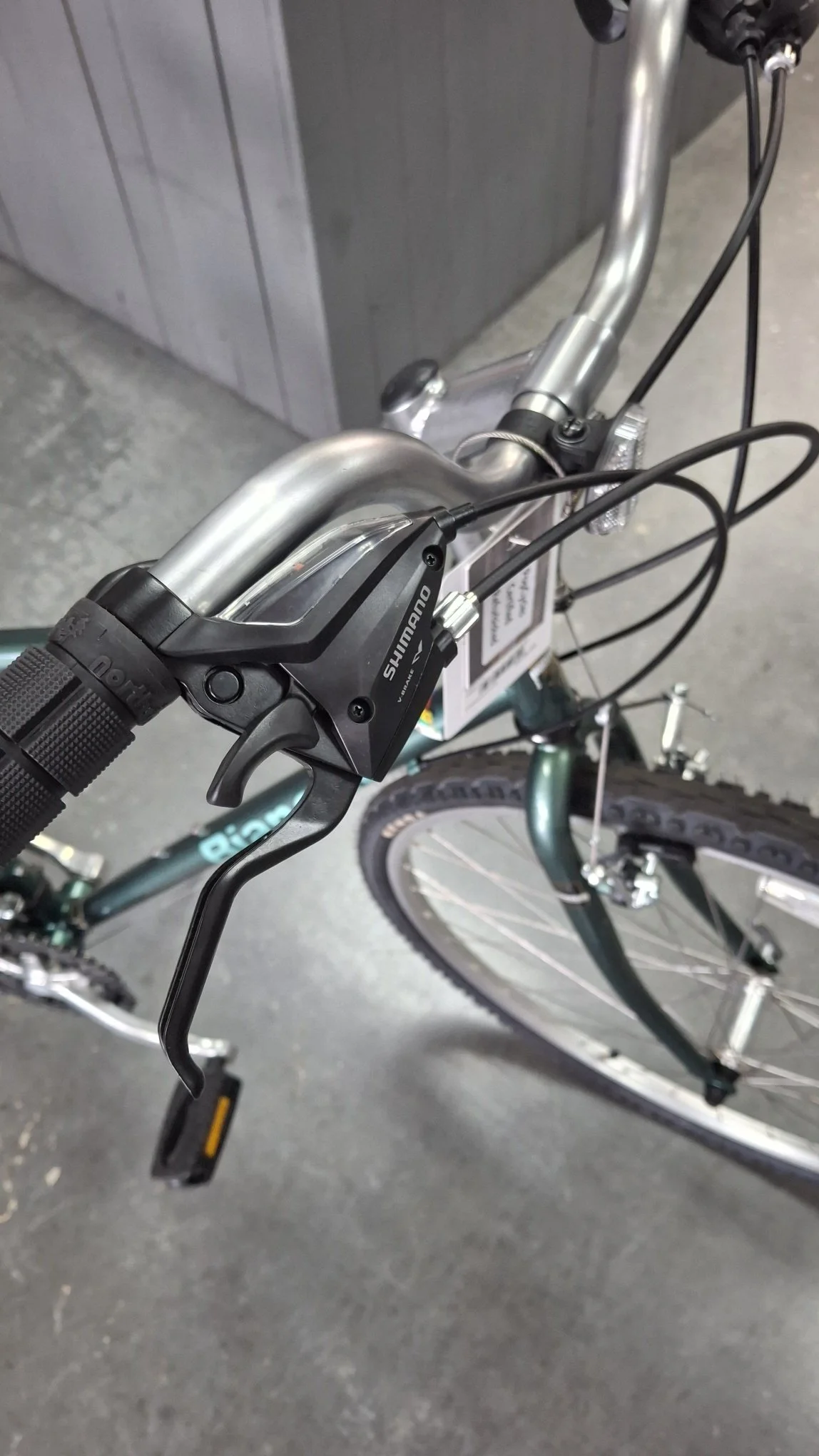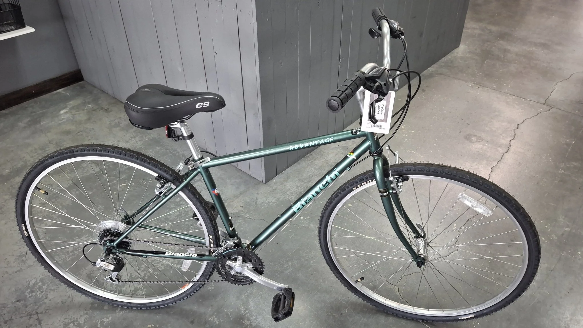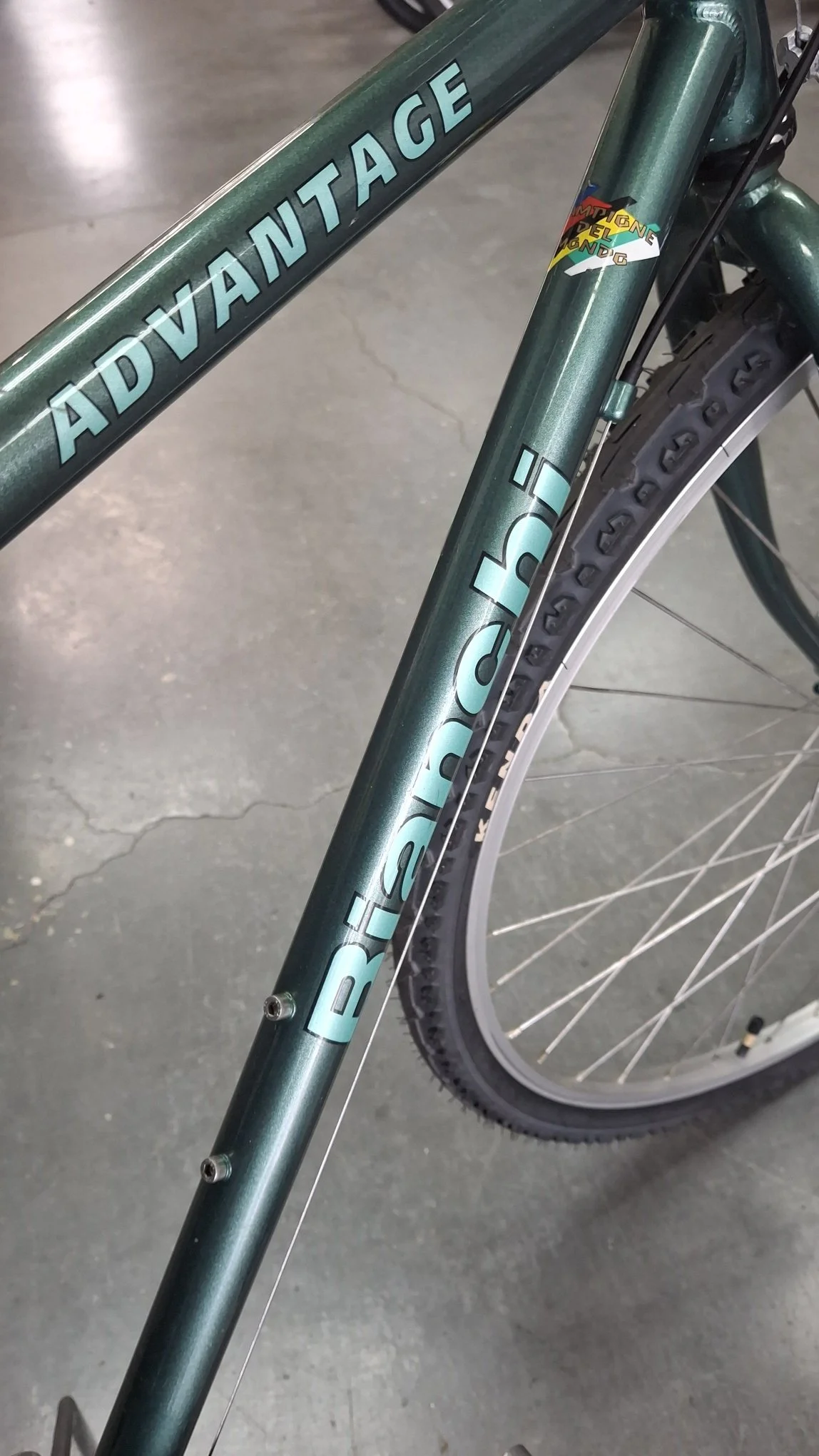 There's a reason Bianchi has been building bikes since 1885 - they know how to make something that rides right. The 1999 Advantage is a lightweight chromoly steel hybrid built for pavement, bike paths and casual trail riding, with 700c wheels, an upright comfortable position, and smooth Shimano shifting that just works. It's the kind of bike that disappears under you, you stop thinking about the bike and just enjoy the ride. This one came out of our refurbish looking better than the day it left the factory - that deep metallic green is turning heads in the shop. It rides exactly as good as it looks.