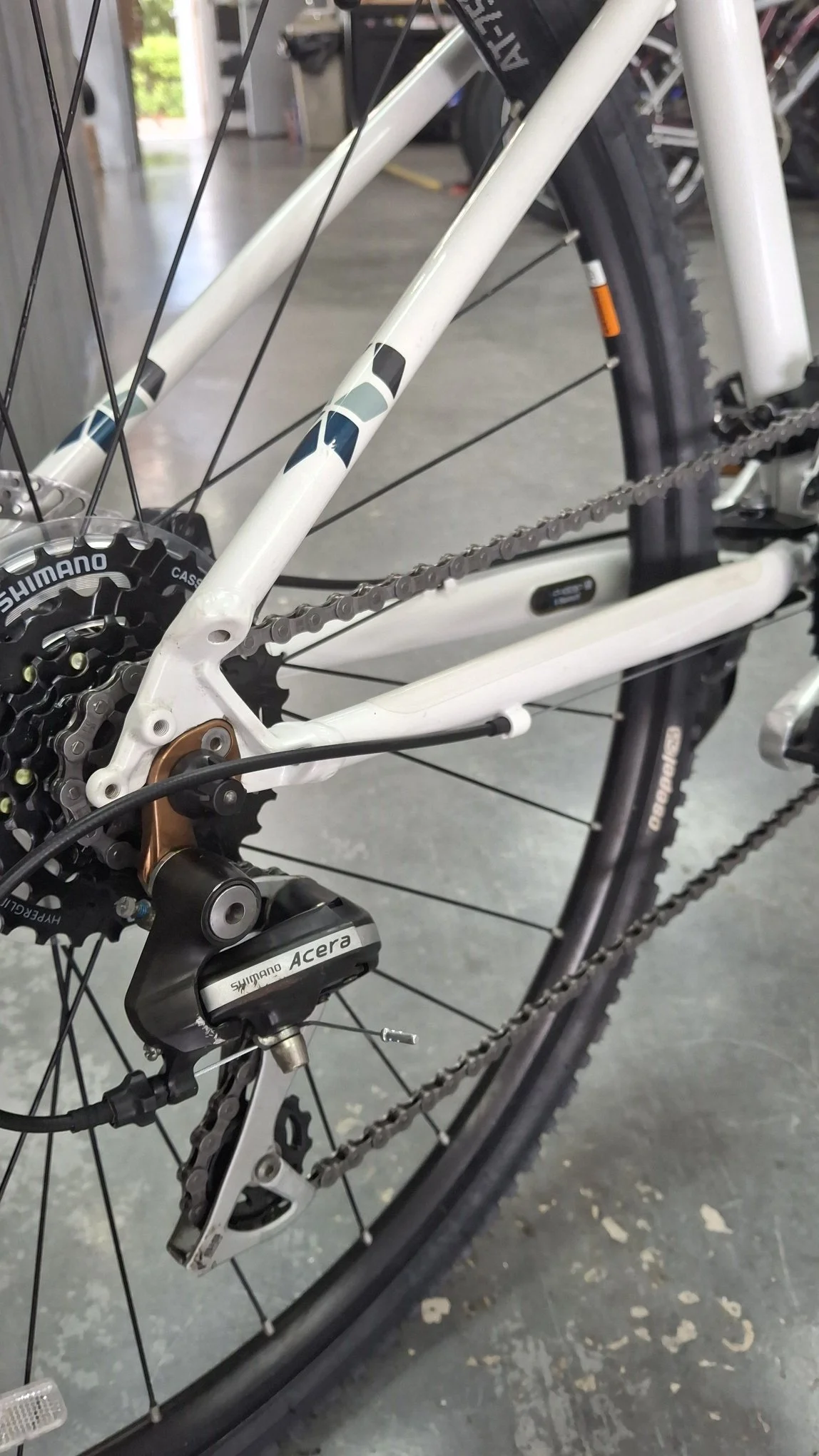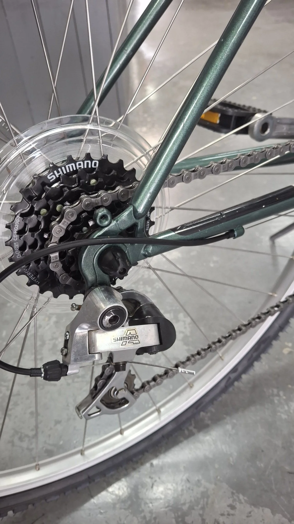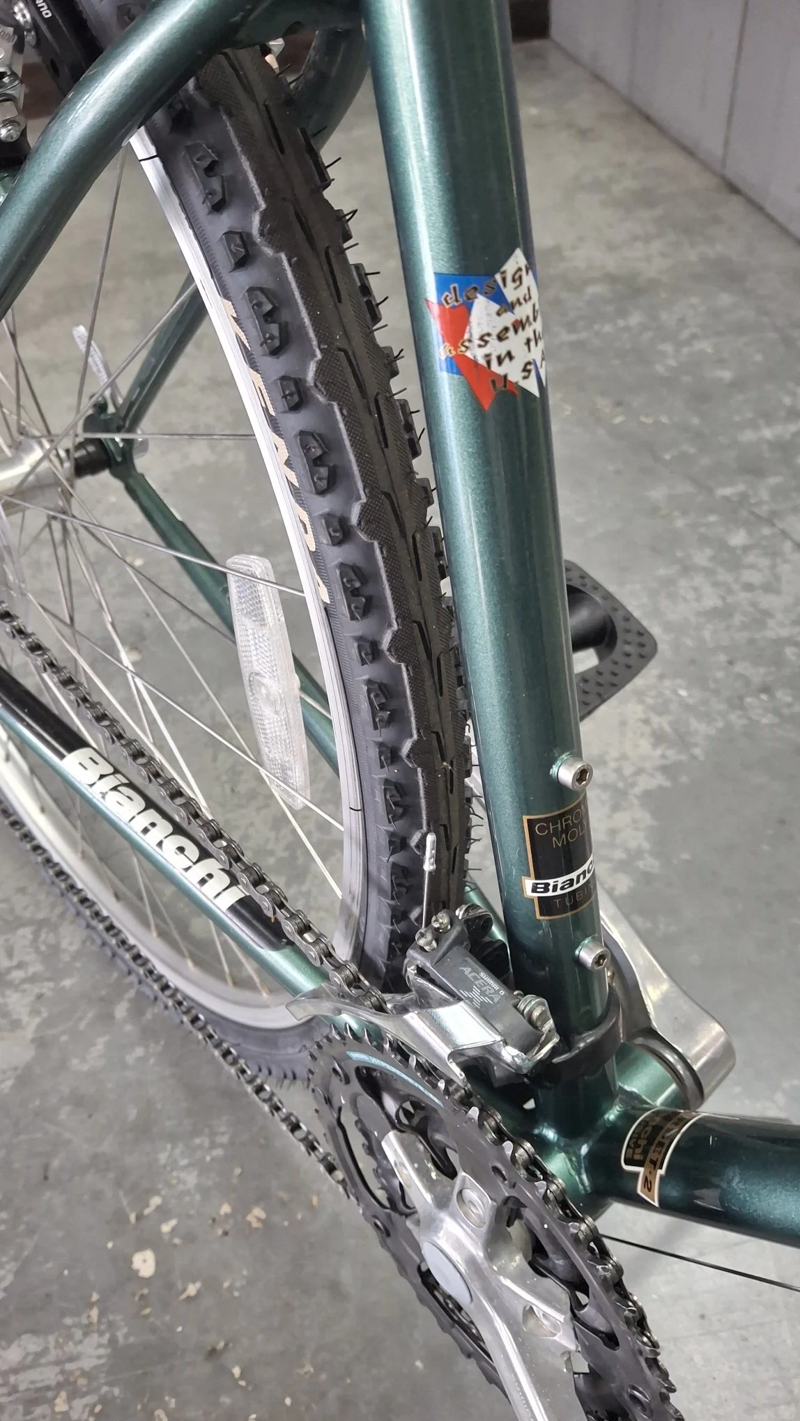 There's a reason Bianchi has been building bikes since 1885 - they know how to make something that rides right. The 1999 Advantage is a lightweight chromoly steel hybrid built for pavement, bike paths and casual trail riding, with 700c wheels, an upright comfortable position, and smooth Shimano shifting that just works. It's the kind of bike that disappears under you, you stop thinking about the bike and just enjoy the ride. This one came out of our refurbish looking better than the day it left the factory - that deep metallic green is turning heads in the shop. It rides exactly as good as it looks.