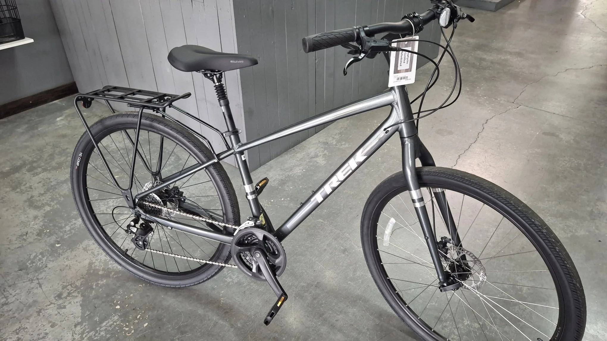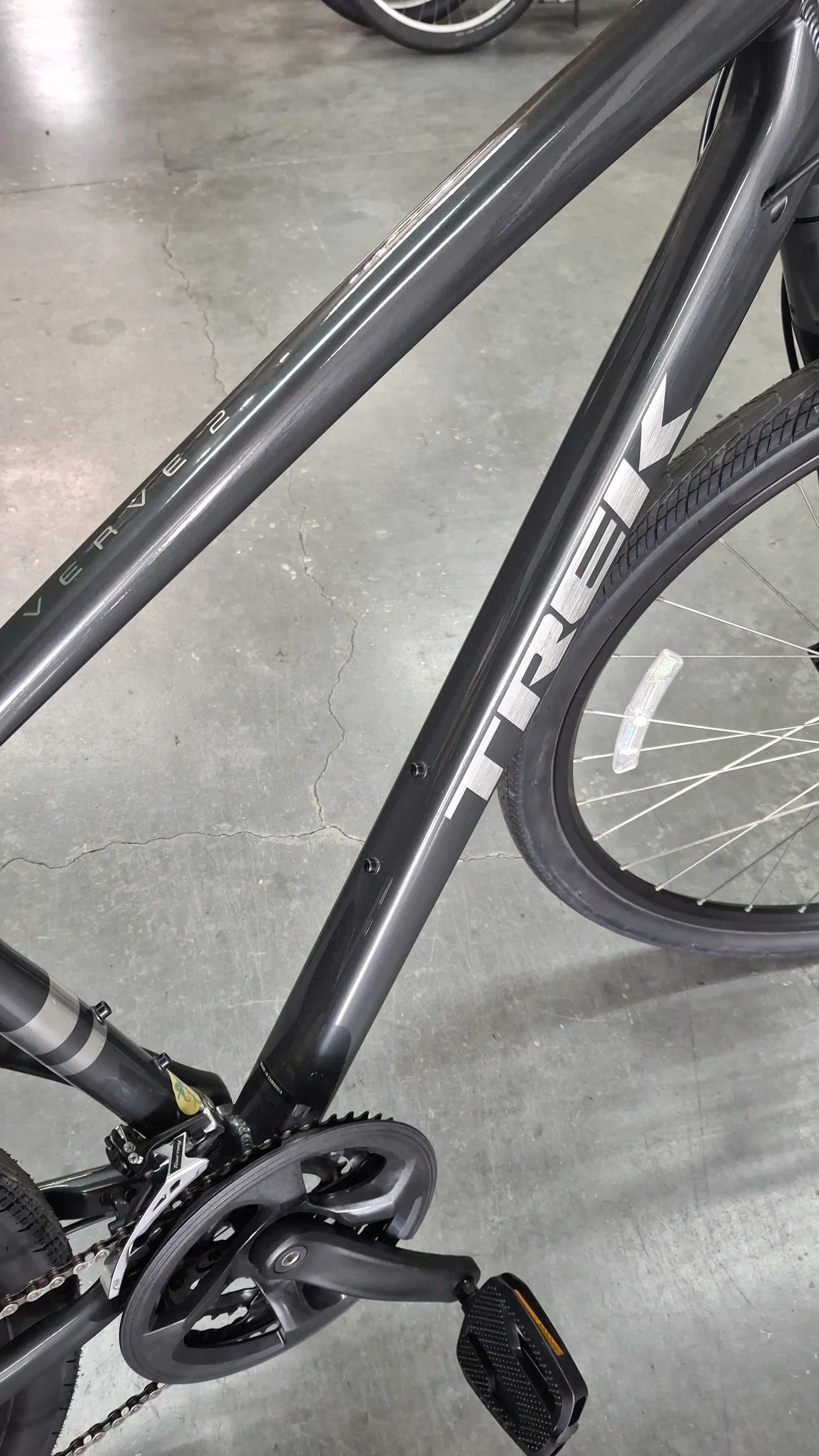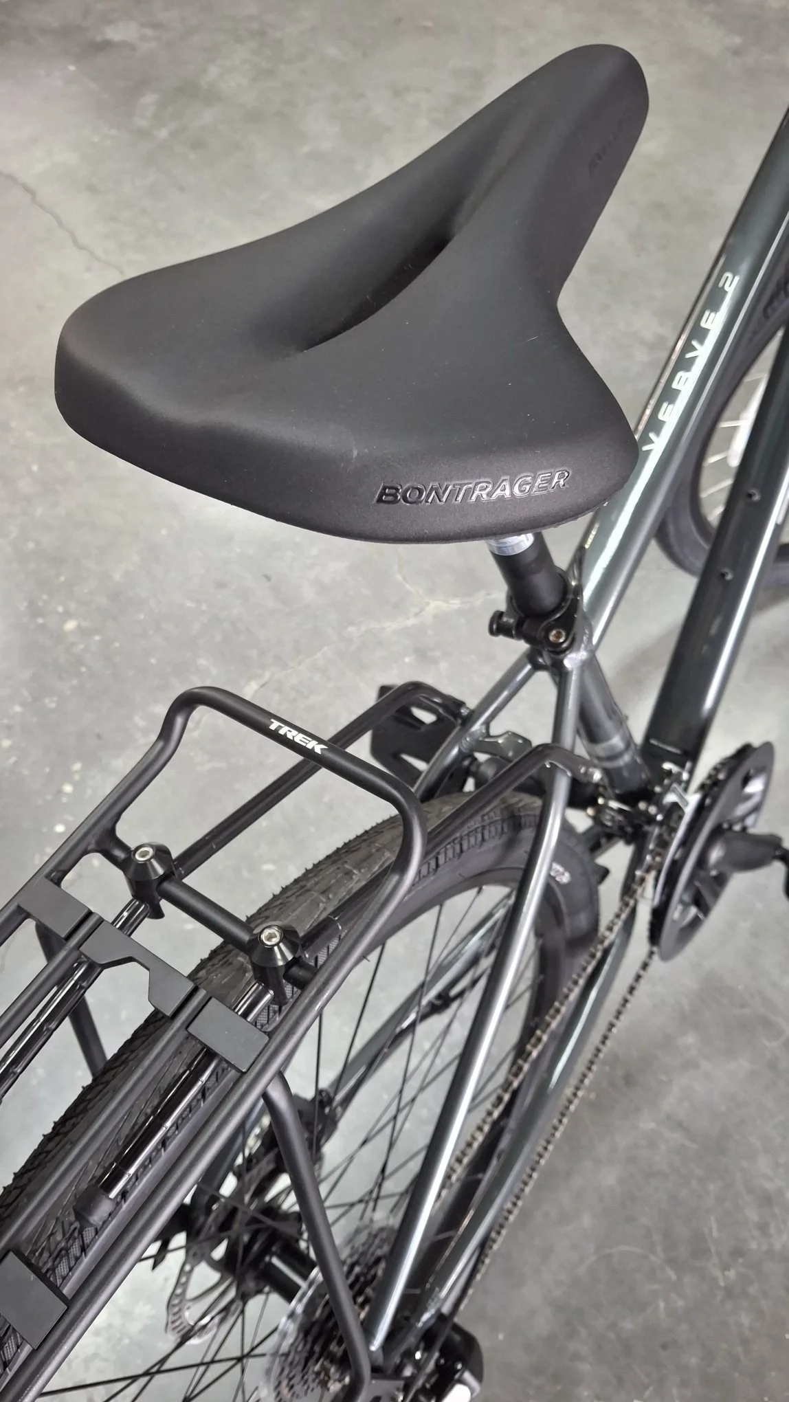 Verve 2 Disc is a hybrid bike designed for comfort and fun on commutes, cruises, and fitness rides. It has a lot of thoughtful features that make for a confident and comfortable ride, like a suspension seat post, padded saddle, and disc brakes that perform in any weather. Our refurbished bike is also fitted with a Trek MIK rear rack, Trek kickstand, Cateye bell and lock on ergo grips.