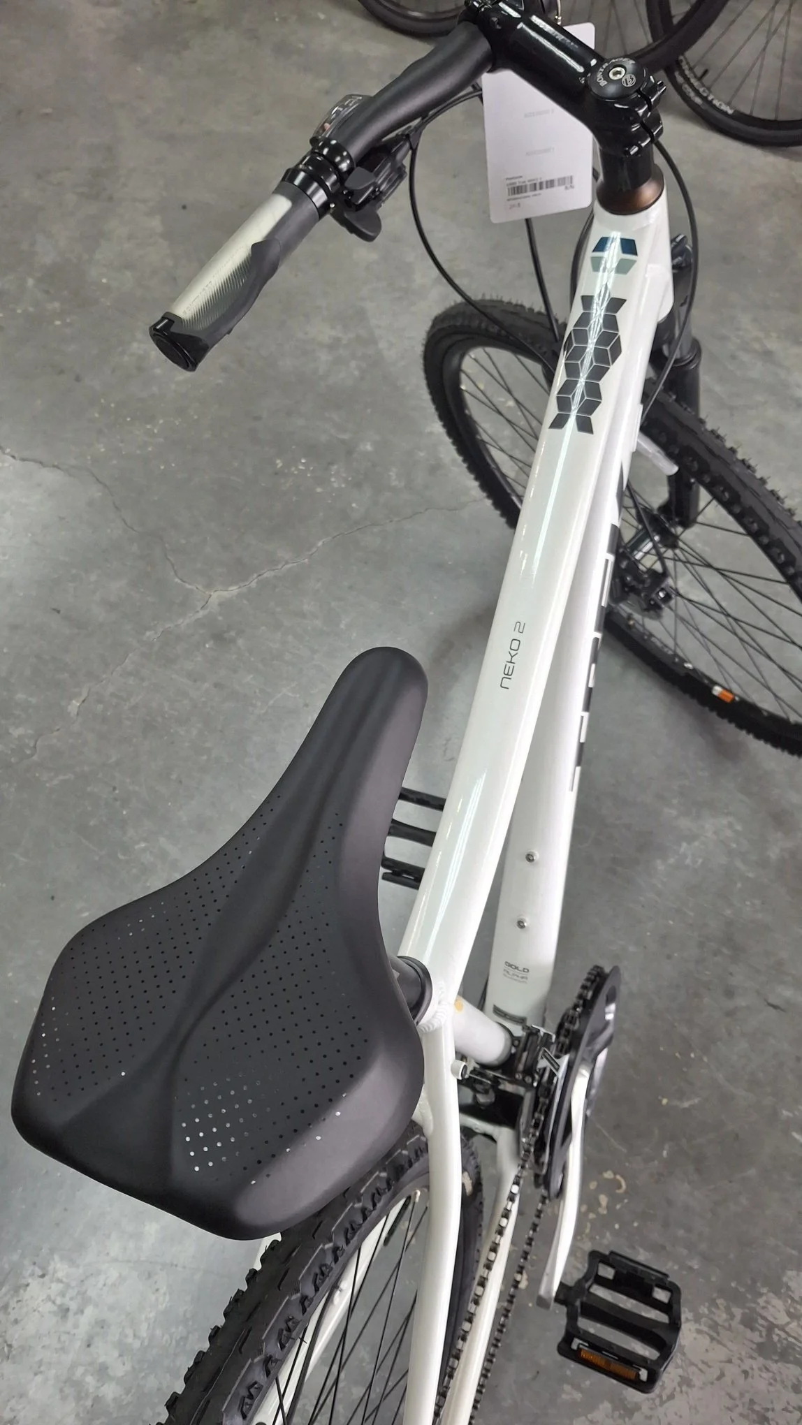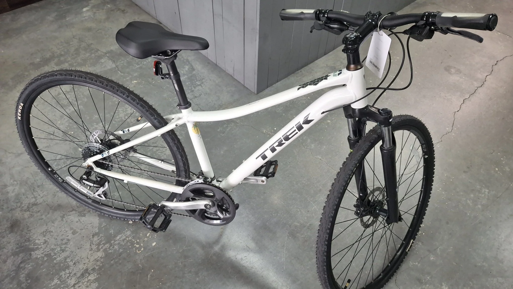 Neko 2 is a go-anywhere hybrid bike that performs on a variety of surfaces. It's efficient on pavement, stable on rougher terrain like gravel paths, and comfortable wherever you ride it. A lightweight frame with a lower top tube for easy mounting and dismounting, suspension fork, all-terrain tires, hydraulic disc brakes, and touchpoints designed for women make it a great choice for riders who want to explore beyond smooth city streets. Our refurbished bike also includes a Trek kickstand.