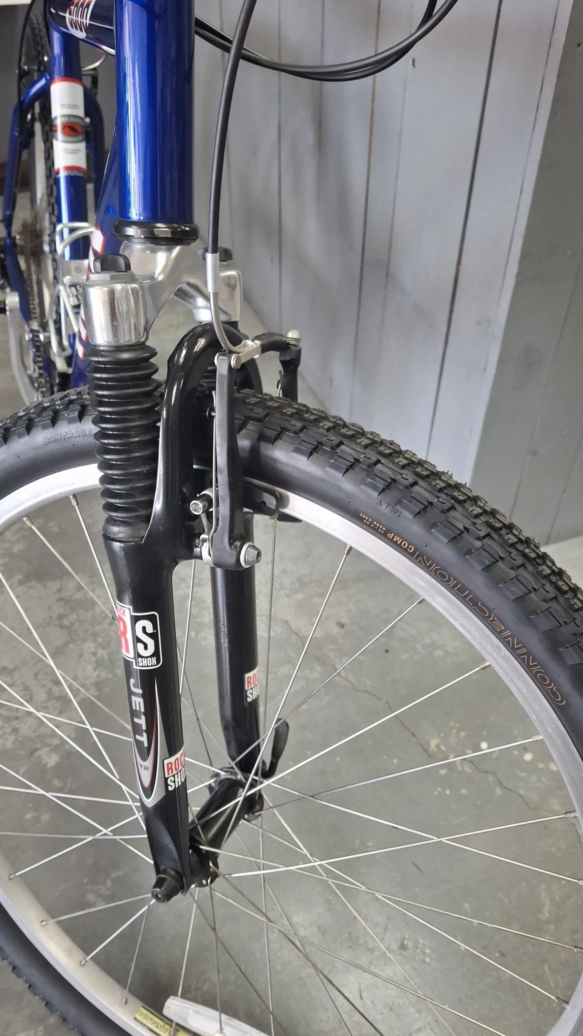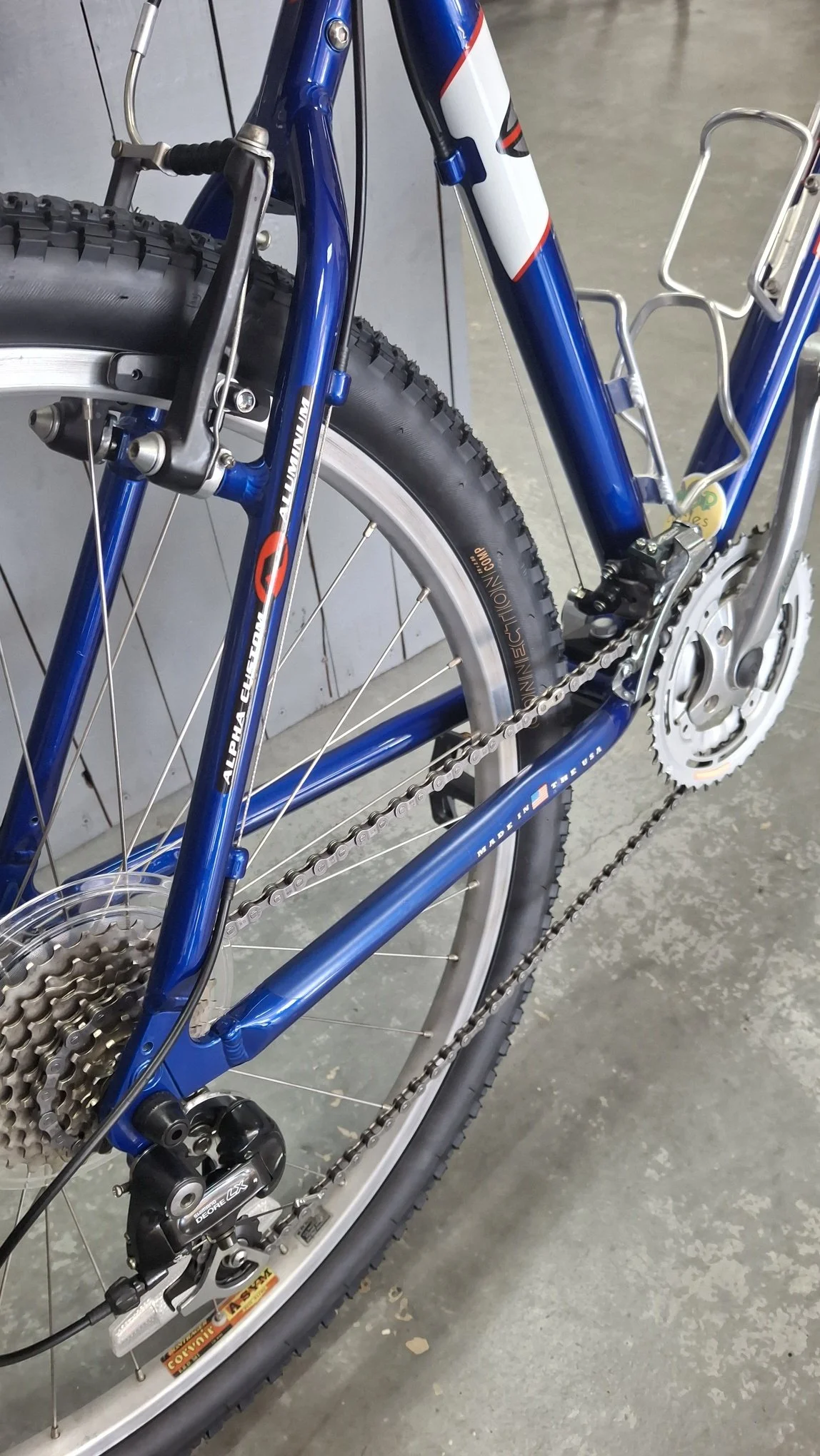 The late 90s produced some of the best mountain bike geometry ever built, and the Trek 6000 is a prime example. Lightweight aluminum frame, aggressive trail geometry, and a ride that feels planted and confident on dirt, roots and loose gravel. This one came equipped with a Shimano LX drivetrain - the same groupset serious trail riders were specifying back then, and still smooth and precise today. That iconic metallic blue isn't bad either.